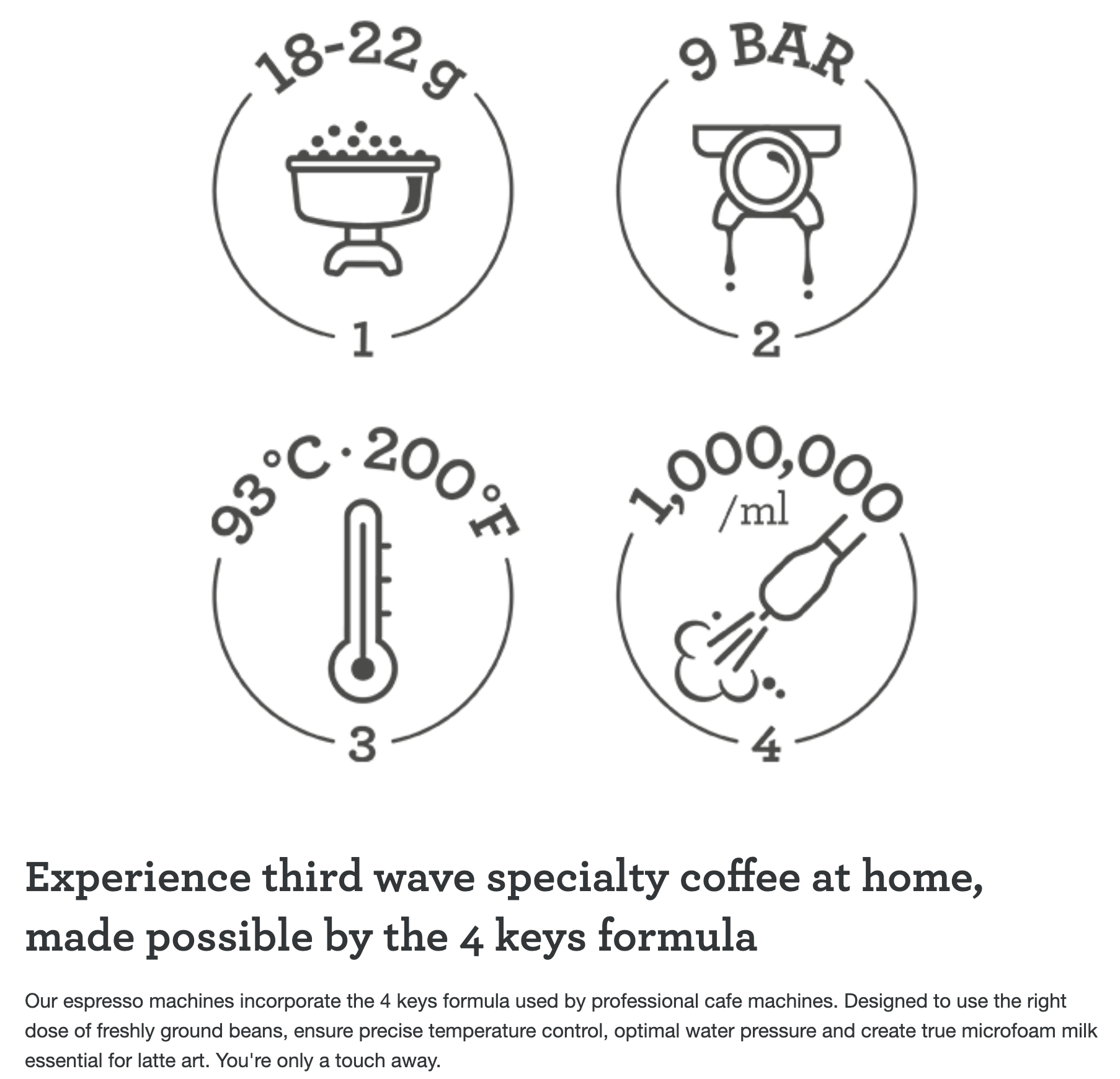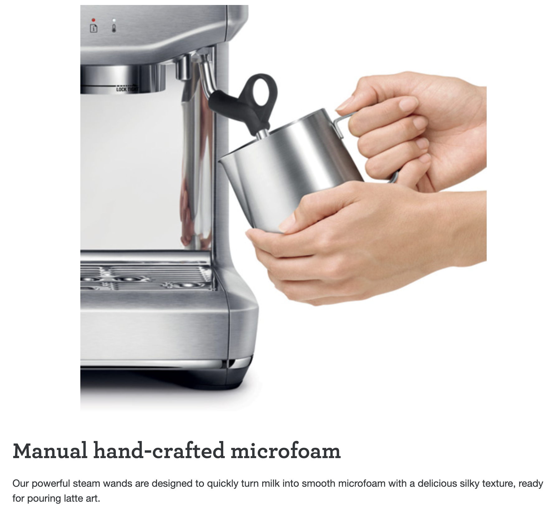 The integrated conical burr grinder delivers the perfect amount of coffee on demand, while precise temperature control ensures optimal espresso extraction every time. Enjoy the full barista experience with manual microfoam milk texturing, allowing you to craft silky lattes and cappuccinos with authentic café quality.
