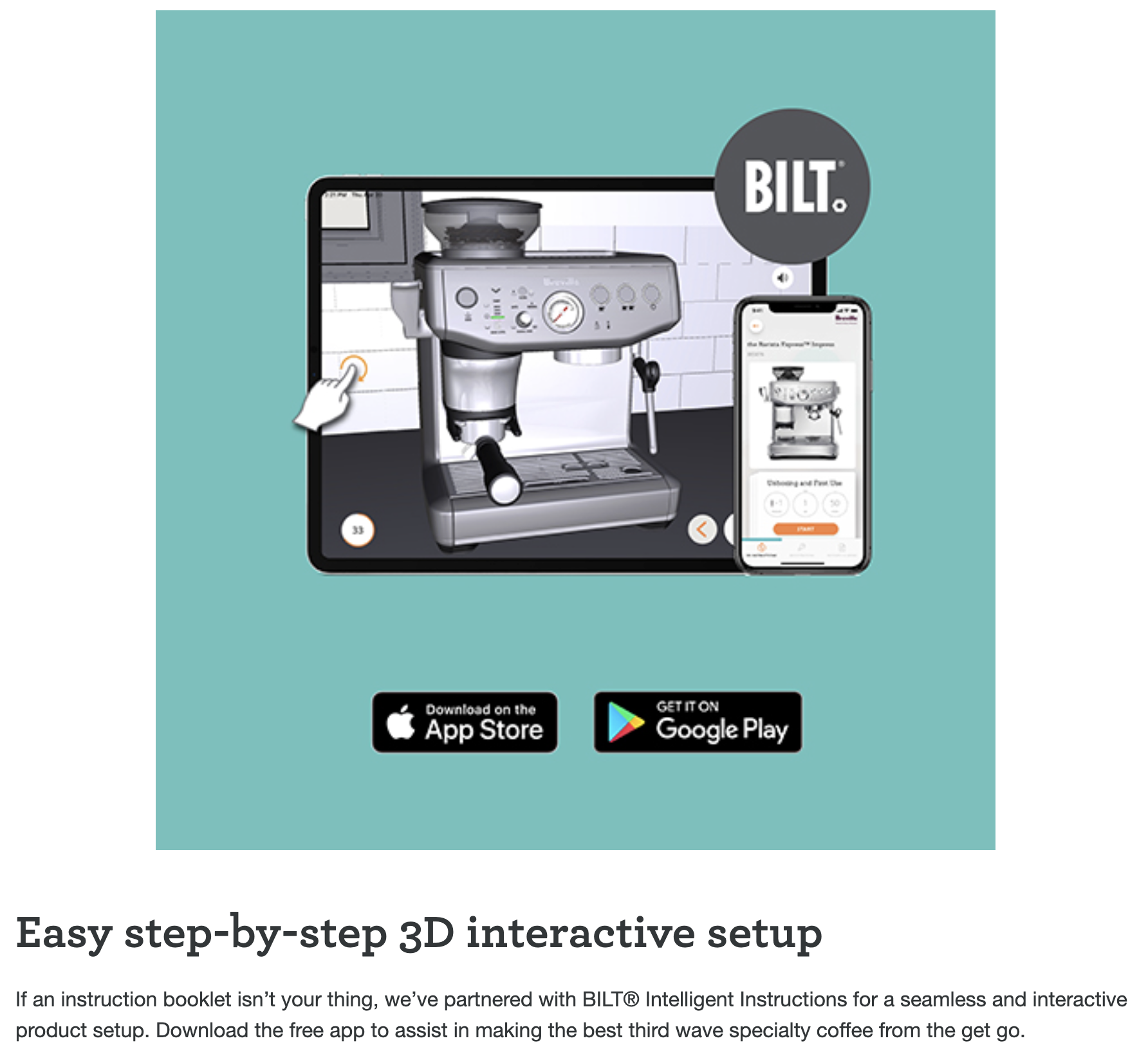 Built with a durable brushed stainless steel finish, the Barista Express combines style, performance, and ease of use. Its simple button interface, adjustable grind settings, and manual override give you complete control over every cup.