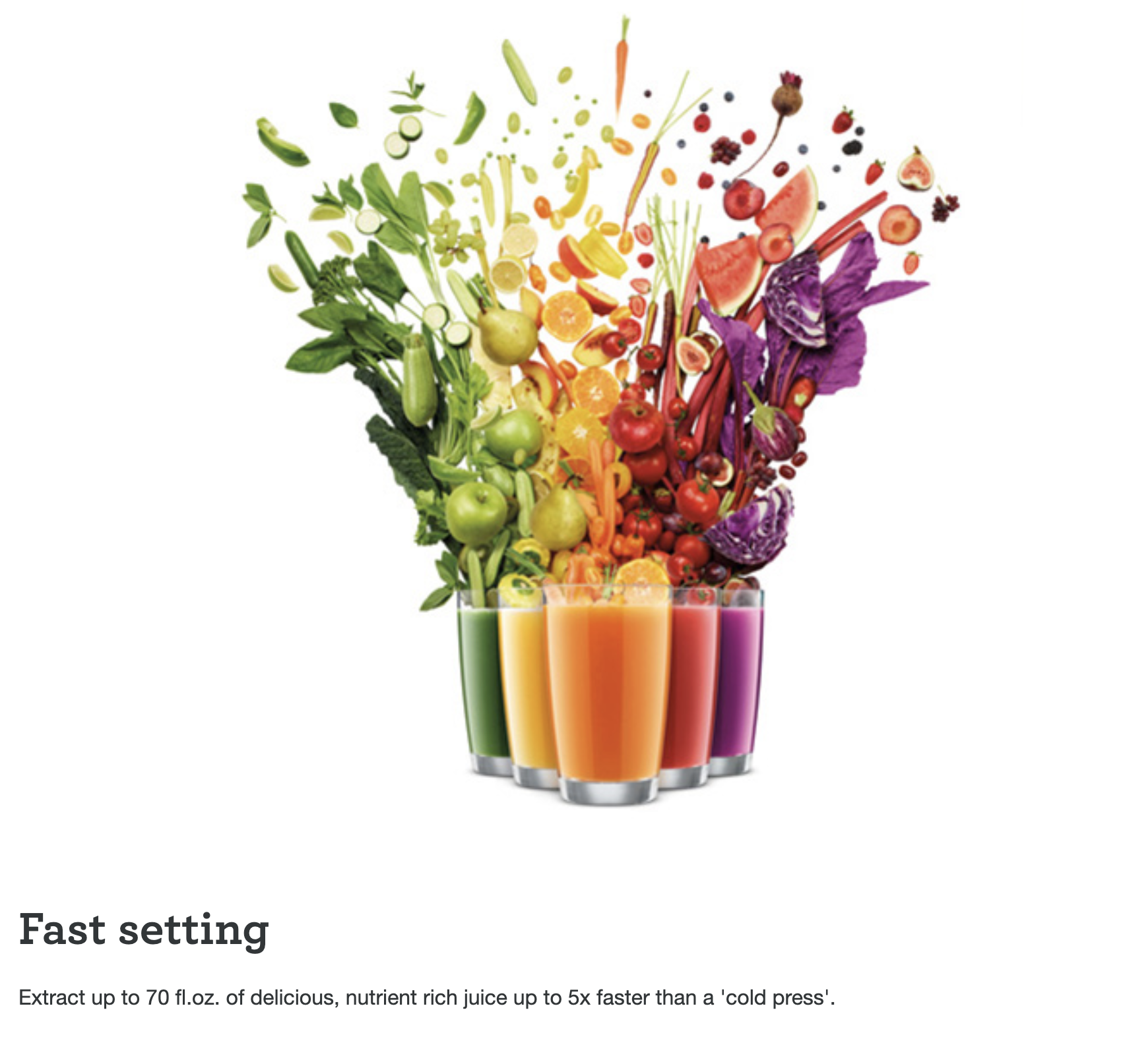 The elevated juicing system lets you juice directly into the 70 fl.oz. Seal and Store jug, perfect for making large batches to enjoy throughout the week. With multiple speed settings, a stainless steel juicing basket, and removable jug and pulp bin, cleaning and storage are quick and easy.