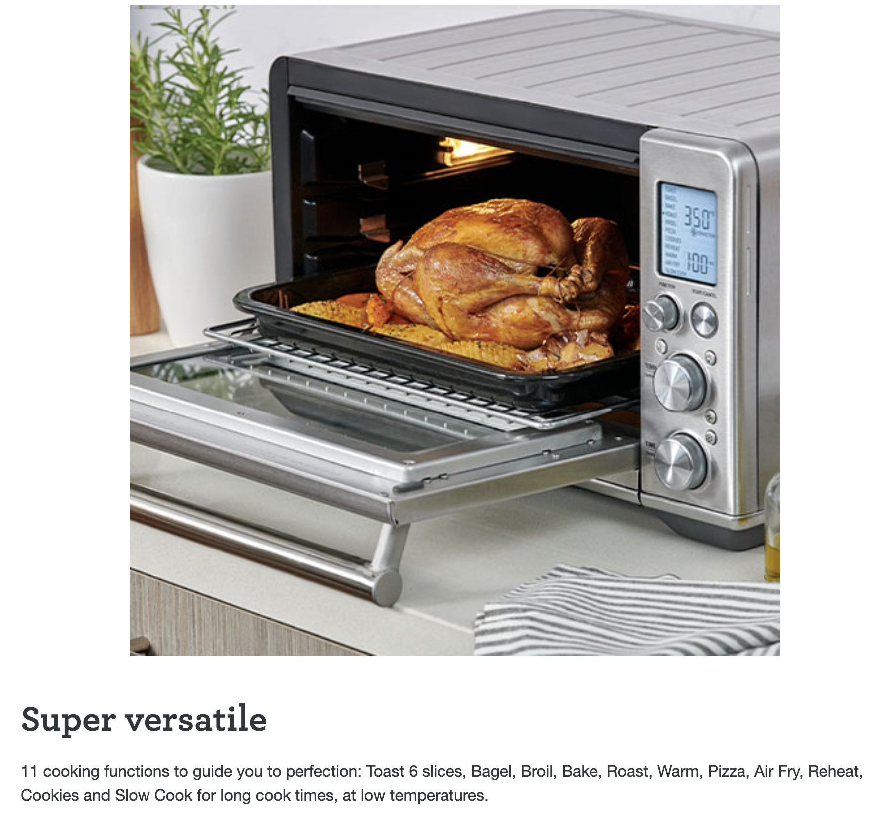 Cook smarter and faster with the Breville Smart Oven Air Fryer, powered by the advanced Element iQ® system. Intelligent algorithms replicate the ideal cooking environment for air frying and 10 other techniques, delivering consistent results with higher temperatures, super convection, and up to 35% less energy compared to a built-in oven.