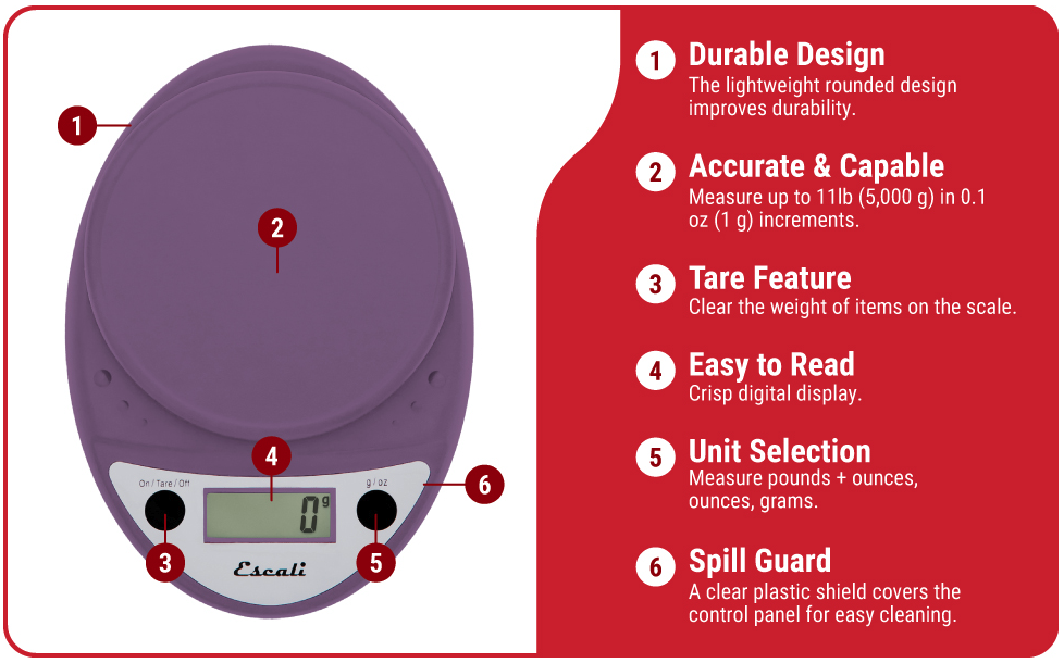 Twice rated as a best value by a leading independent consumer magazine; the Escali Primo Digital Scales are multifunctional and feature an easy-to-use two-button operation. The sealed control panel and rounded design make the scale easy to keep clean and very durable.
