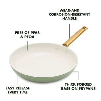 As the inventors of ceramic nonstick, we’re proud of the things we don’t put in our pans. Our Thermolon™ coating won’t release toxic fumes when overheated and creates 60% less CO2 than traditional nonstick during the curing phase. It lasts longer, performs better, and it makes every meal healthier. Healthy cooking starts with GreenPan.