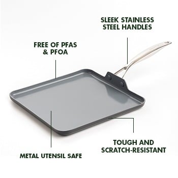 Ready for all your diner favorites (and so much more), this griddle has plenty of room for pancakes, burgers, and whatever else your short-order heart desires. Extra tough and scratch resistant, this pan is built to last. Order up!