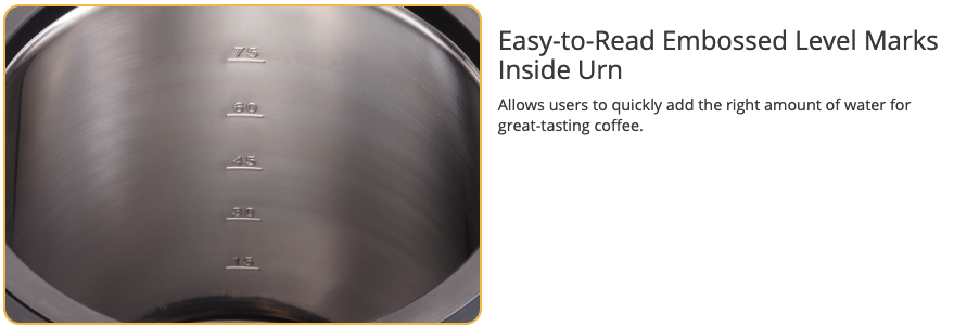 - East-to-read embossed level marks inside urn