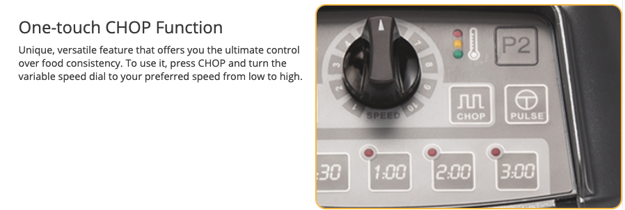 - Precision control touchpad with custom program buttons, preset timer buttons and one-touch CHOP