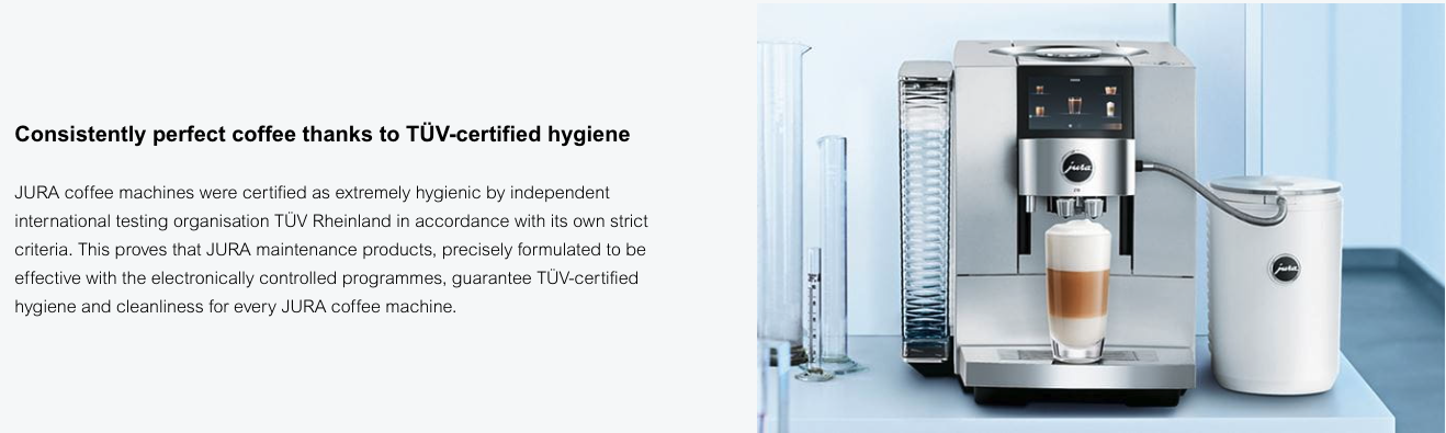 At JURA, environmentally responsible product design is just as important as the sustainable use of resources and energy. That's why JURA uses only a phosphate-free formula for its original cleaning tablets. This optimised formula guarantees TÜV-certified hygiene for your coffee machine and also has a lower environmental impact.