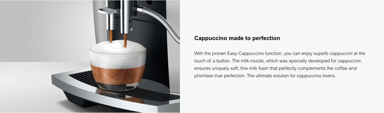 Cappuccino with a master touch: Treat yourself to perfect coffee every day with the E6. In addition to classic black coffee specialities, it makes the crowd favourite, the cappuccino, to perfection thanks to the Easy Cappuccino function.