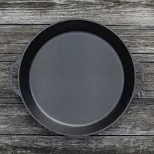 Cooking for a big group? Sounds like the perfect party for our extra large pan. Crafted in America with iron and oil, it's a classic kitchen staple with a naturally seasoned cooking surface that can be used inside or over an open fire. It's ready to help you layer flavors so you can cook delicious food to share. Easily move around your kitchen with the dual handle design. This 17 Inch Dual Handle Pan provides excellent heat distribution and retention for consistent, even cooking. Seasoned and ready to use.