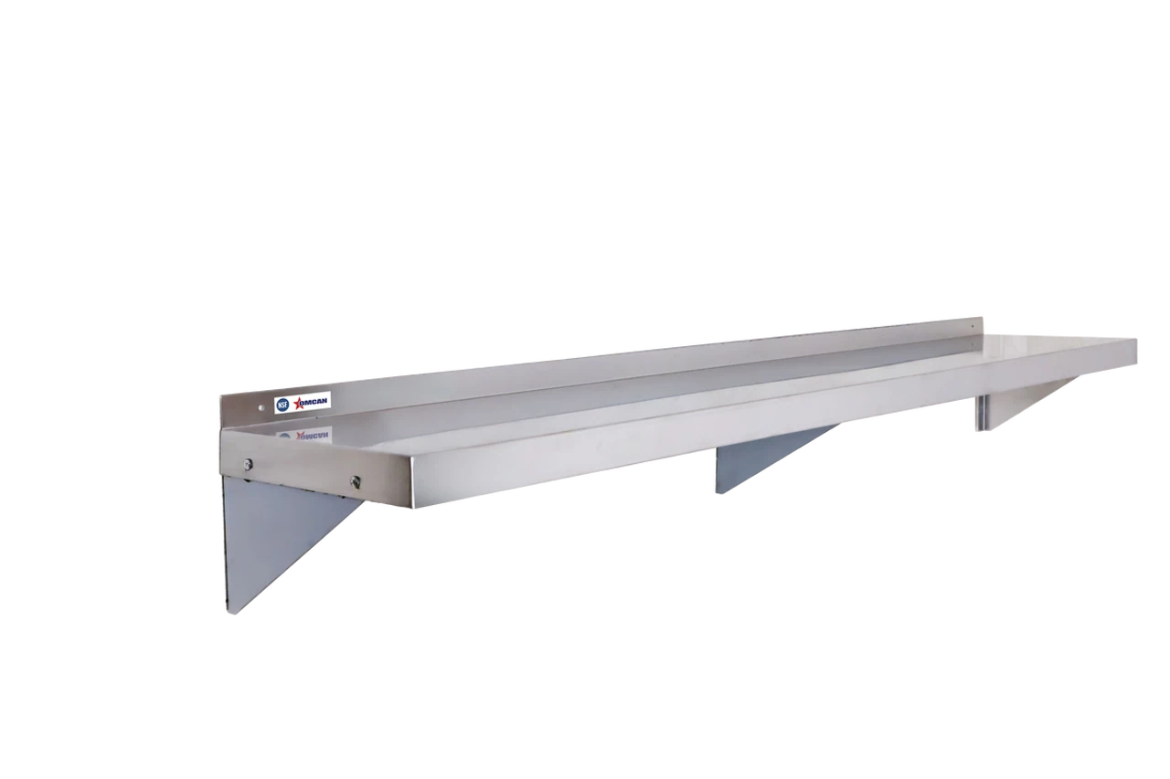 The Omcan 16" x 84" Stainless Steel Wall Shelf is a durable and space-saving storage solution designed for commercial kitchens, workshops, and storage areas. Constructed from high-quality 18-gauge 430 stainless steel, this wall shelf offers excellent strength, corrosion resistance, and easy maintenance. Its sturdy design is reinforced by two robust triangular brackets, ensuring stable and reliable support for various kitchen essentials, equipment, or tools.