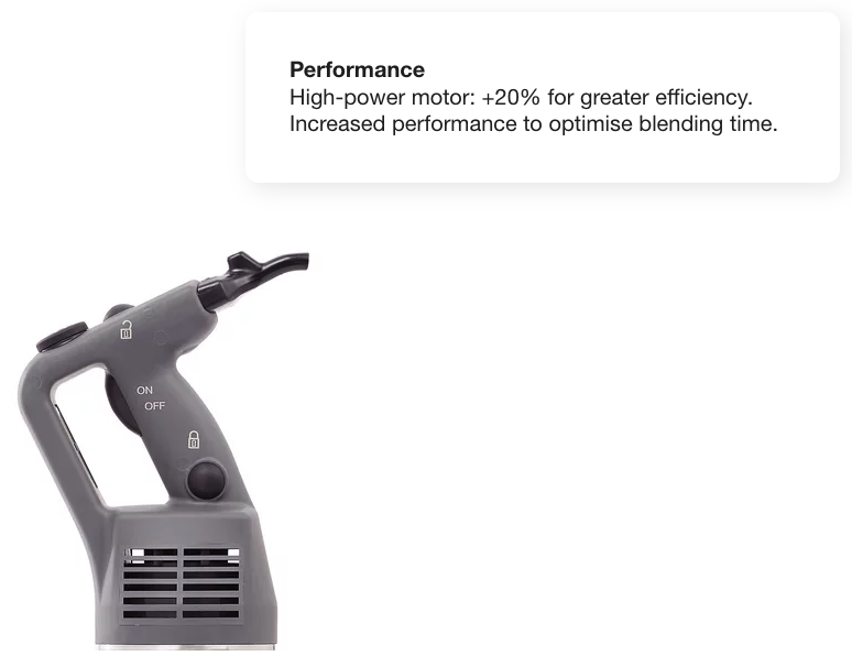 This unit boasts a 1 HP motor with variable speeds between 3,000 and 10,000 RPM that gives you optimum control over your blending. Plus, the 14" shaft is great for liquefying, pureeing, and blending to make delicious soups, sauces, pates, and more in your commercial kitchen. Also, replacing the power cord if it becomes worn or frayed isn't a problem because it was engineered to easily detach from the unit.