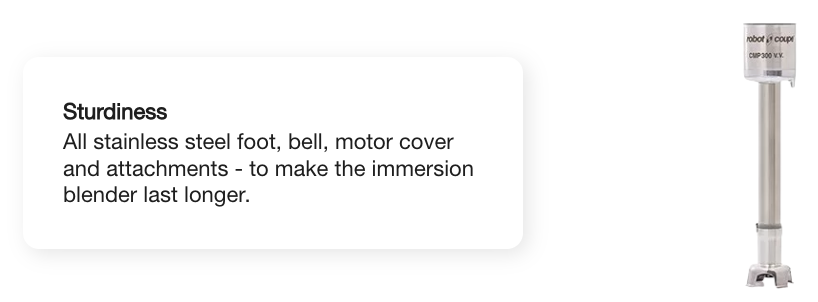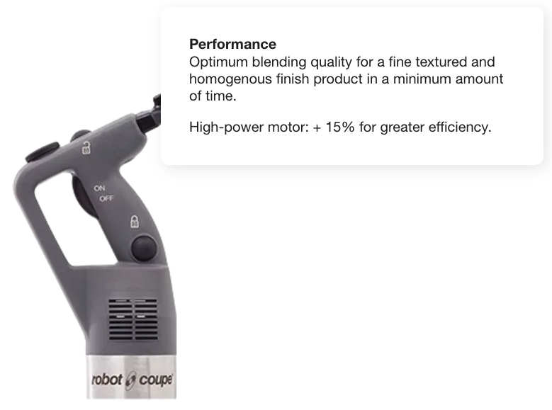 This unit boasts a 310 watt, variable speed motor that delivers between 5,000 and 10,000 RPM with speed self-regulation to achieve great results each time. The blender's 10" stainless steel shaft is great for liquefying, pureeing, and blending, while its compact size makes it easy to use, transport, and store when space is at a premium.