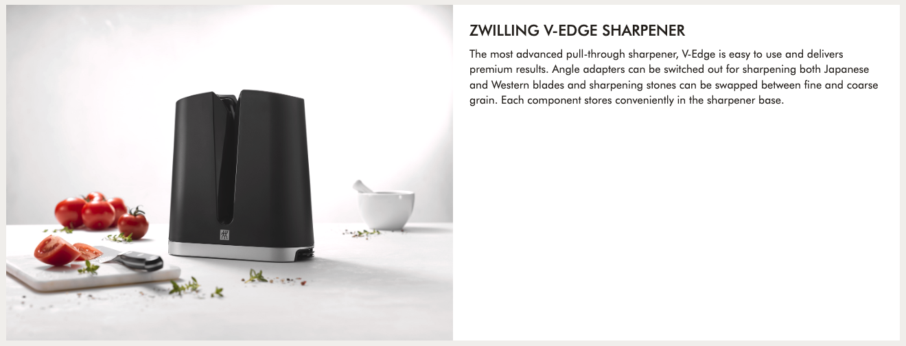 Never a dull knife again! Its time to sharpen like the professionals. Included in this set is a ZWILLING Gourmet 6.5” Nakiri and ZWILLING V Edge Sharpener.