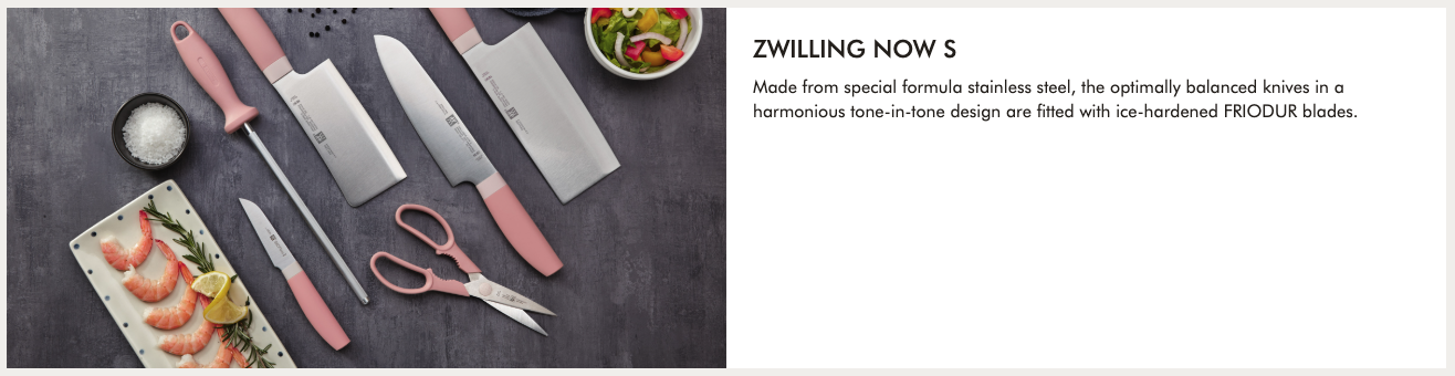 The ZWILLING Now S Pink 7-piece Knife Block Set offers a distinctive array of knives that will complete your kitchen toolset. Each knife features an elegant two-tone pink handle that evokes the romantic colour of cherry blossoms. A set like no other, this Now S Pink knife block boasts two of the most important knives in the Asian kitchen, the ever-useful vegetable cleaver (also known as the Chinese chef’s knife) and the powerful meat cleaver.