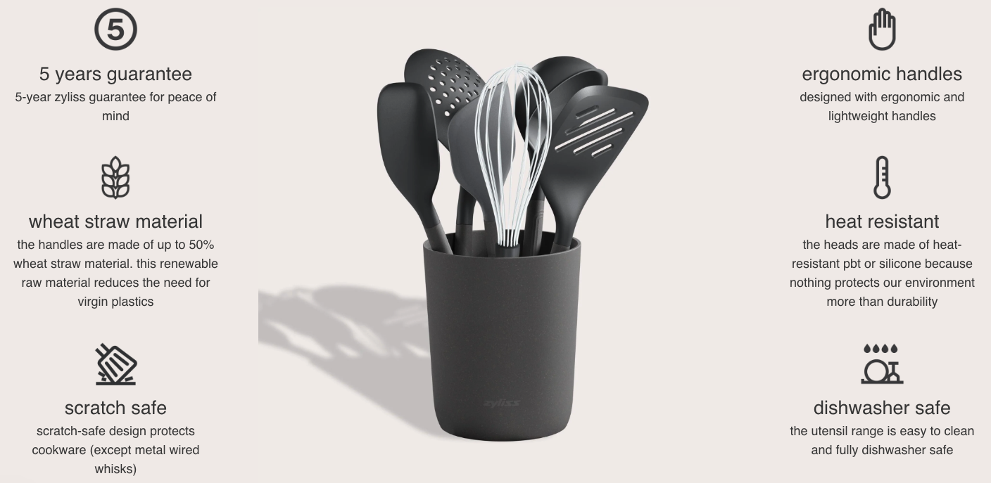 For added convenience, all utensils in the Zyliss 7-Piece Set are dishwasher safe and backed by a 5-year Zyliss Guarantee, ensuring long-lasting performance in any kitchen.