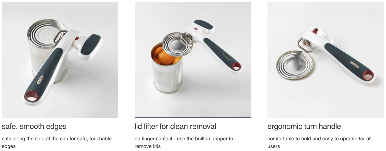 The Zyliss Safe Edge Can Opener is designed to open cans safely, smoothly, and cleanly. It cuts along the side of the lid to create a touch-safe edge, reducing the risk of injury. The built-in lid gripper lifts the lid without needing to touch it, ensuring hygienic removal. Its ergonomic turn handle and compact design make it comfortable to hold and easy to use, while its smart engineering ensures reliable performance for years to come.
