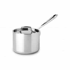 Like all the pots and pans, saucepans come in different sizes and materials. Typically, a saucepan is tall and narrow. This allows water, or any liquids, to be safely contained in a small space. Stews, stocks, and sauces are great uses for a saucepan. The usual size for a saucepan is 2-3 quarts. We love the Zwilling J.A. Henckels Sensation 3Qt Saucepot with lid. This saucepan is the perfect size for performing many tasks. You can blanch veggies, boil macaroni, or reduce a sauce in this saucepan. If you cook with dairy, a Scanpan 6.25” 1Qt Classic Saucepot is for you! This non- stick coating wipes away milk or cheese in a breeze. Plus, it is dishwasher safe! The best saucepan for a large family is the Winco 7.5Qt Saucepan with Lid. Create a marinara to feed a huge crowd. Or make a beef stew for the big game in this huge saucepan!